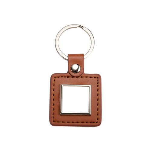 Prémium négyzet alakú kulcstartó (kicsi, barna, bőr-fém)